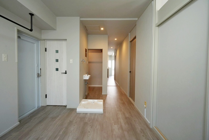 築35年のアパートの2階部分をリノベーションしました。元々2DK2戸を繋げて4DKとして使っていたのですが、各部屋を通らないと奥の部屋に行けなかったので押入れを壊し廊下を作ることで各部屋のプライベートも確保!!ランドリールームも作ったので、天気を気にせず洗濯を干せます!