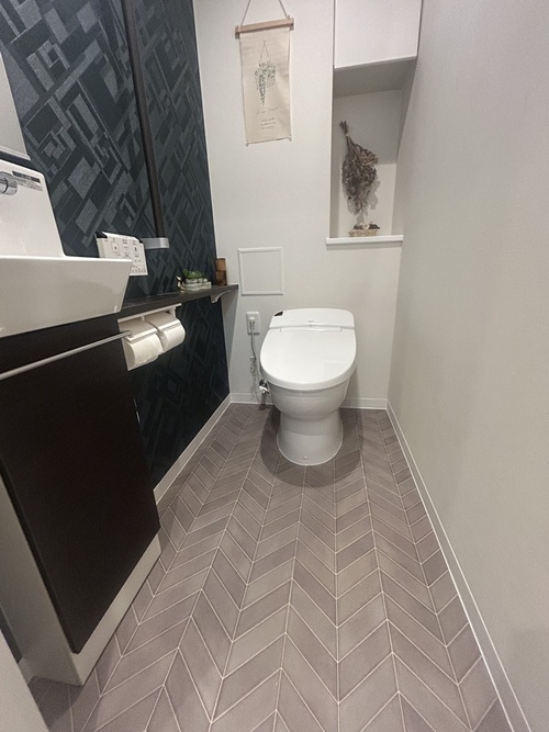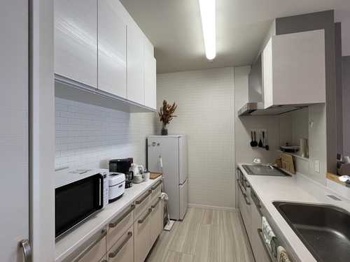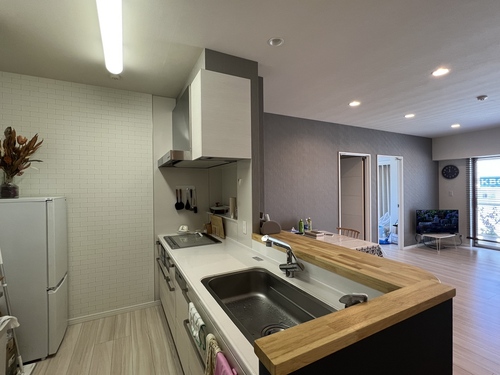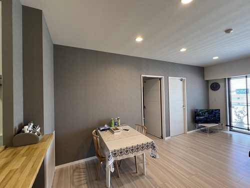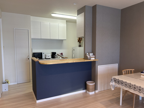 これまで賃貸で人に貸していたお部屋をリニューアル。壁クロスやトイレの床などを一部貼り替えたり、キッチンのカウンターをちょこっと改修しました。